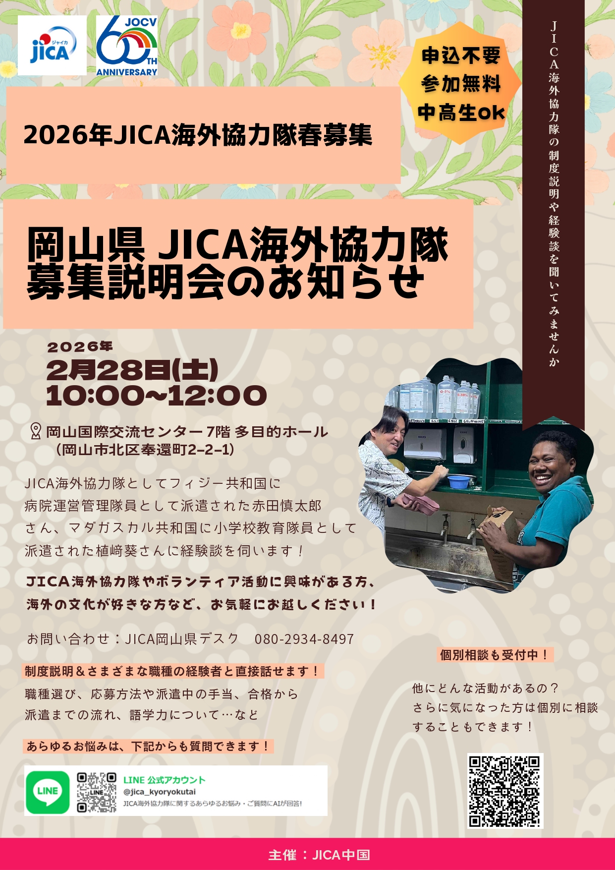E-mail:jicadpd-desk-okayamaken@jica.go.jp