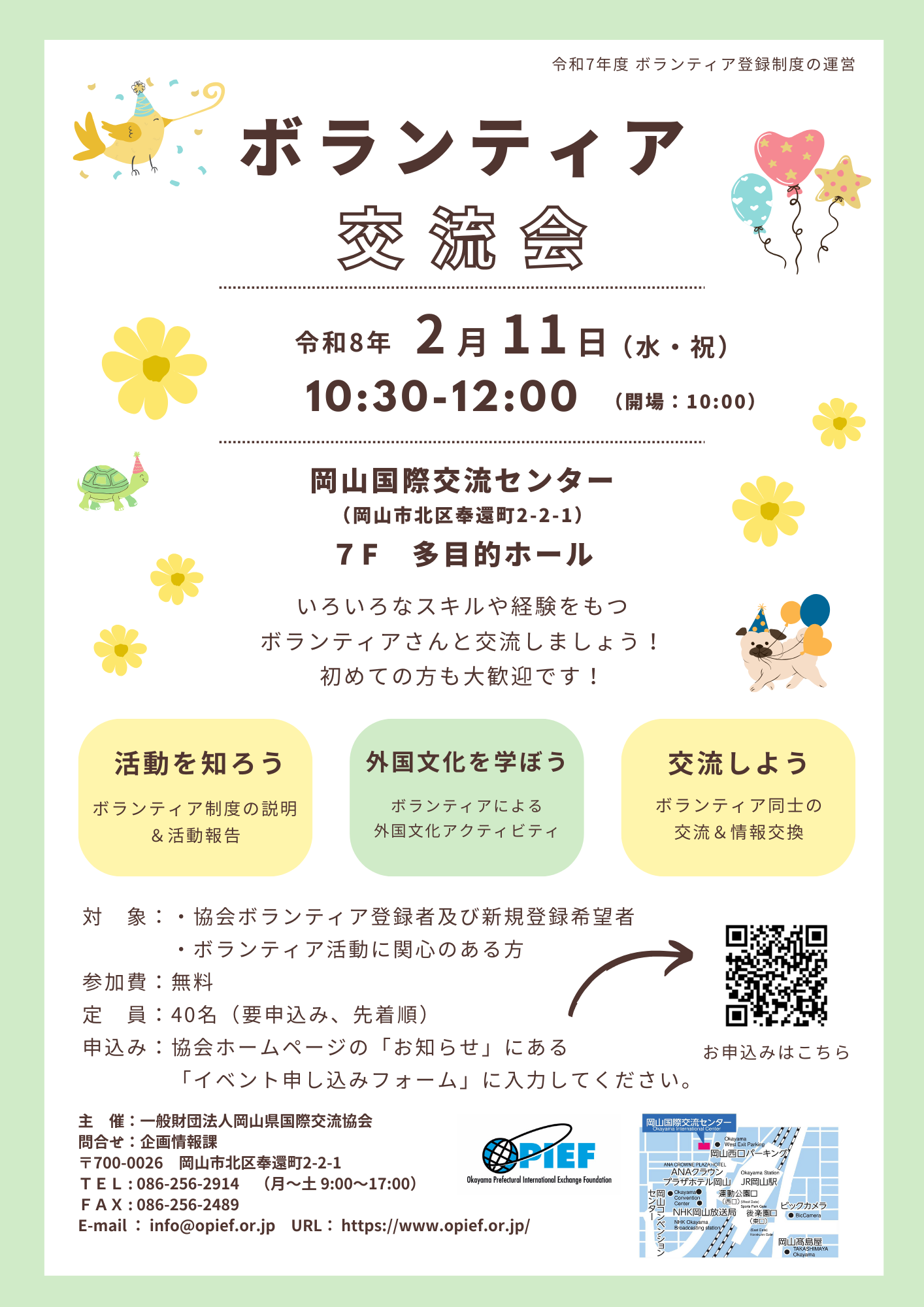 | 主な内容 | ・ボランティア制度の説明 ・外国文化アクティビティ ・ボランティア交流タイム |