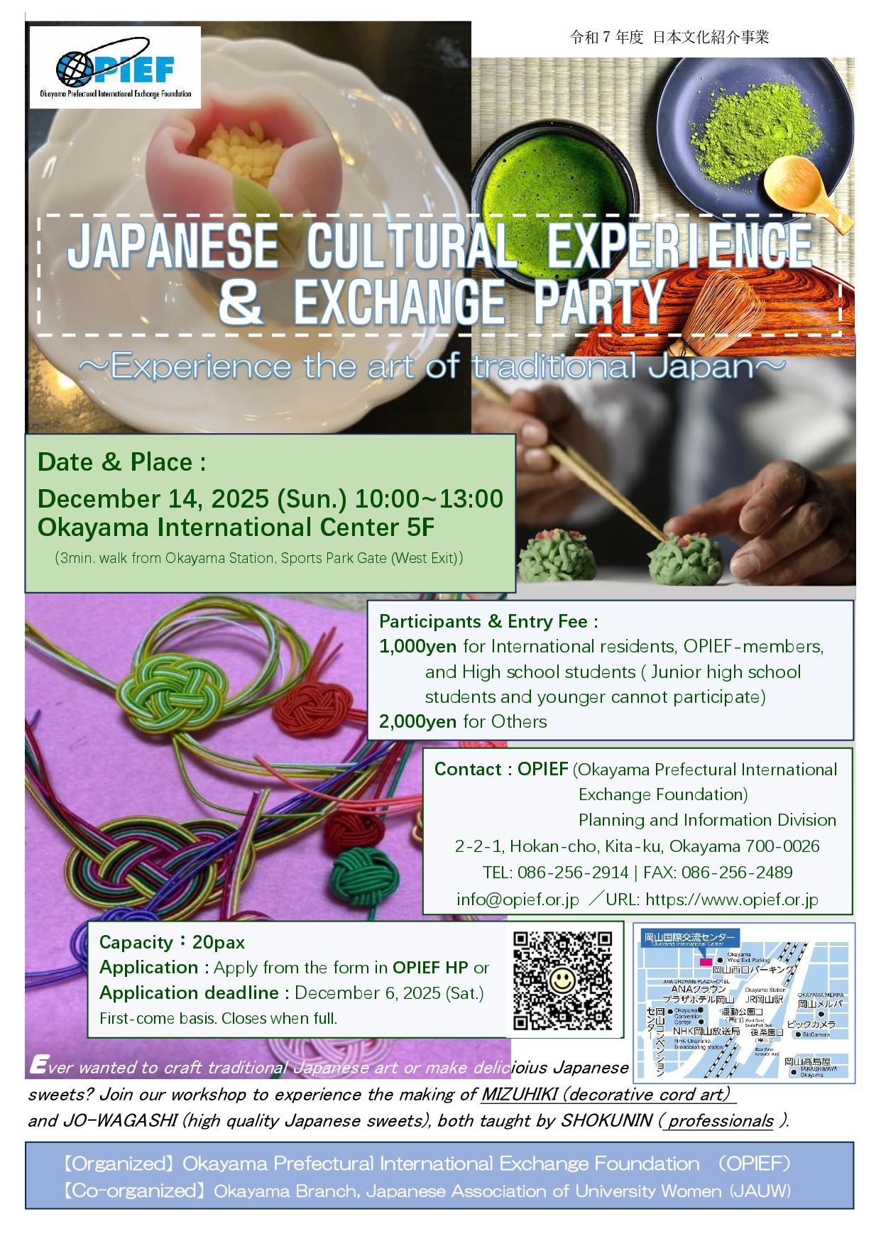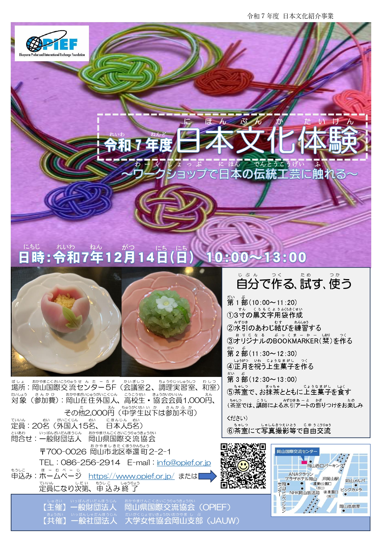 - 令和7年12月14日(日)「日本文化体験・交流会」を開催します。